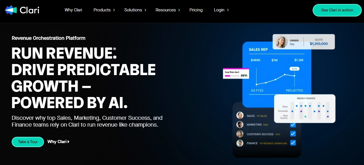 Clari is a revenue orchestration platform that gives reps real-time deal health, forecasting, and revenue context to prioritize actions that actually move quota.