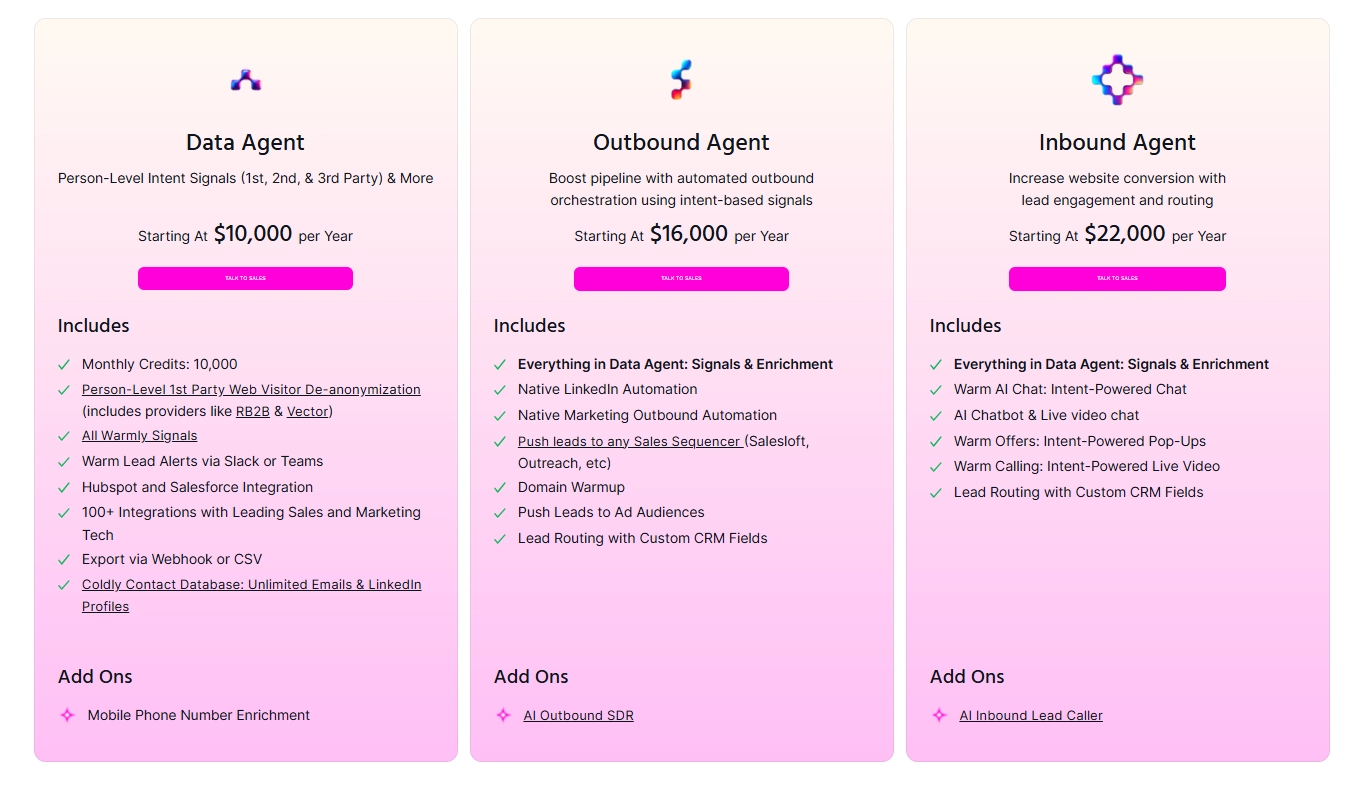 • Professional: Custom pricing, which adds buyer intent data, access to all search filters, and advanced CRM integrations with full API access.