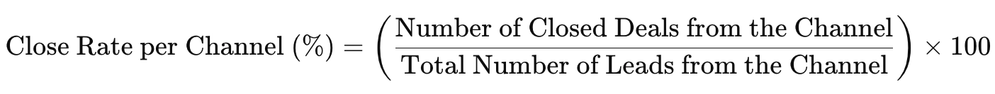Here’s a formula you can use to calculate close rate per channel: