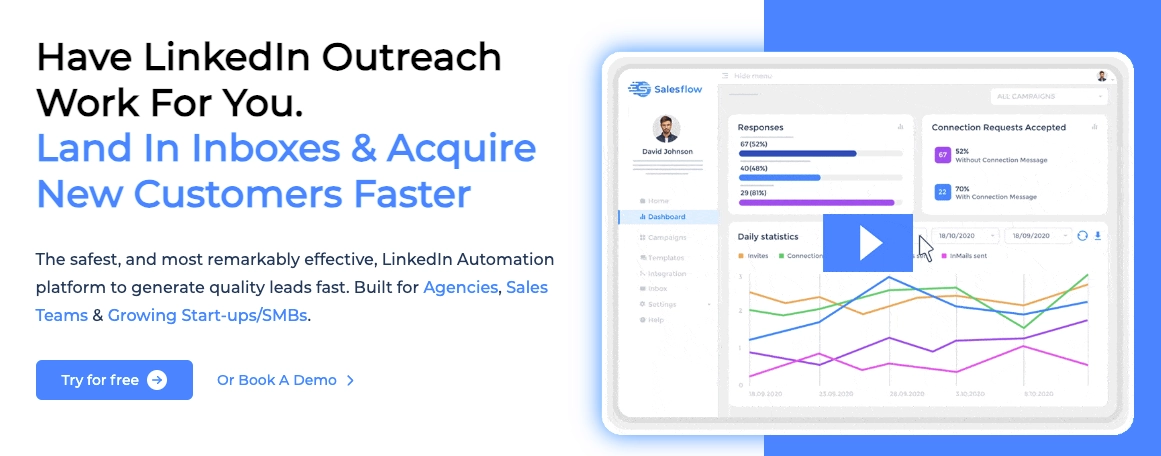 Now, you can use Salesflow integration to add these contacts to your Salesflow sequence with just one click. Once they’re added, Salesflow will initiate the campaign and begin sending out connection requests and personalized messages you already created.