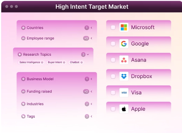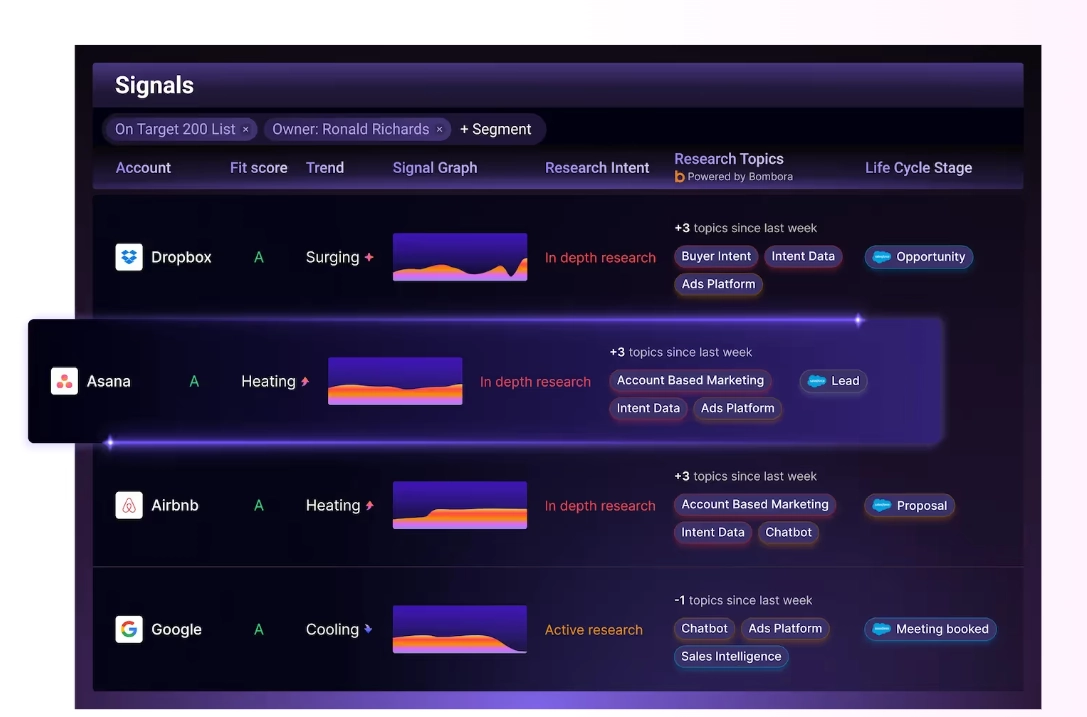 - Predictive or intent signals (who’s actively showing buying behavior).