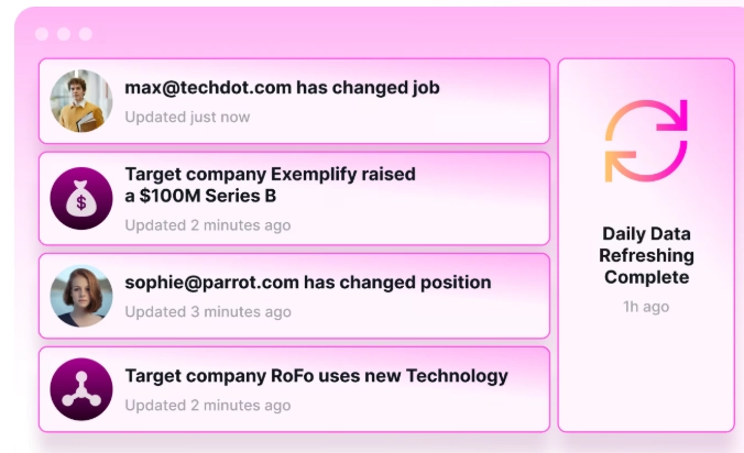 And because Coldly refreshes its data daily, you won’t waste time chasing stale leads or cleaning up bounce-ridden CSVs.
