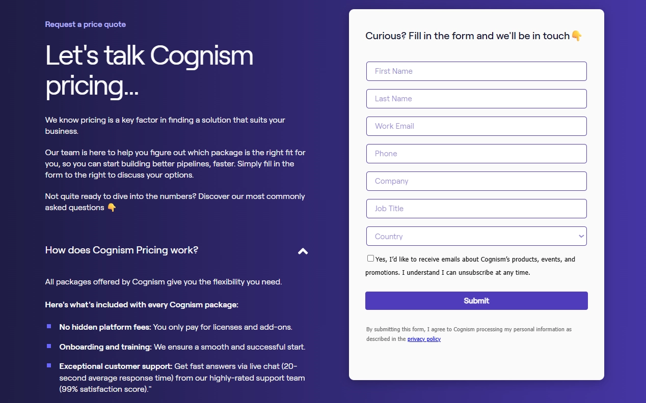 To get an exact quote, buyers need to speak directly with Cognism’s sales team.