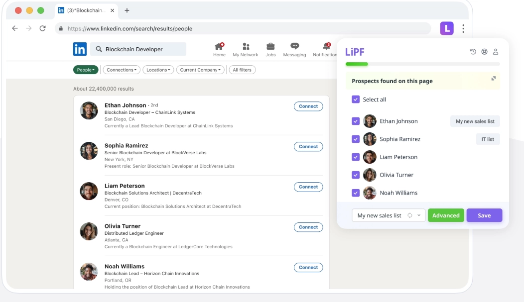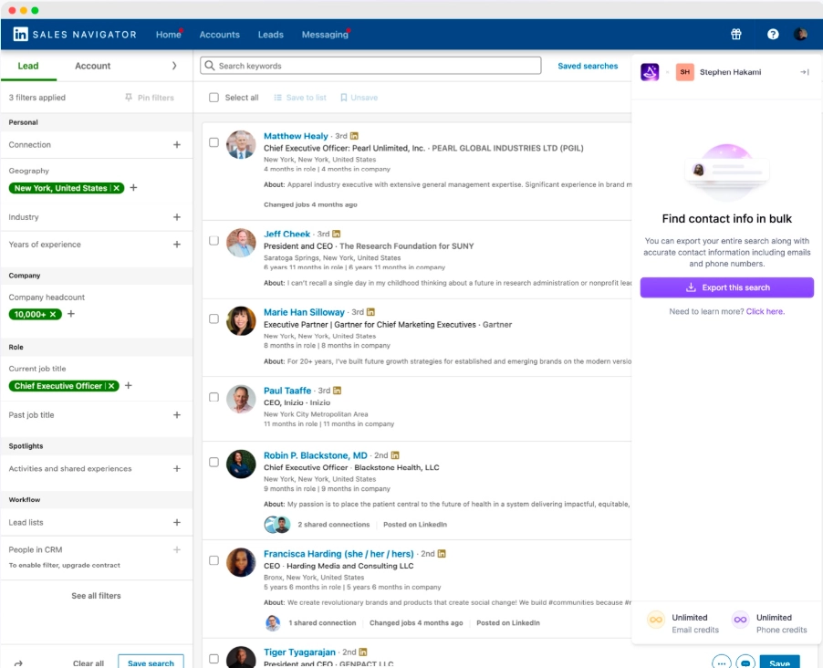 - Chrome extension & LinkedIn integration: Extract emails, phone numbers, and contact details directly from LinkedIn profiles, Sales Navigator, groups, or events.