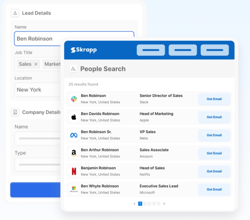 Similar to: Skrapp, Snov.io, Lusha (on the email discovery side)