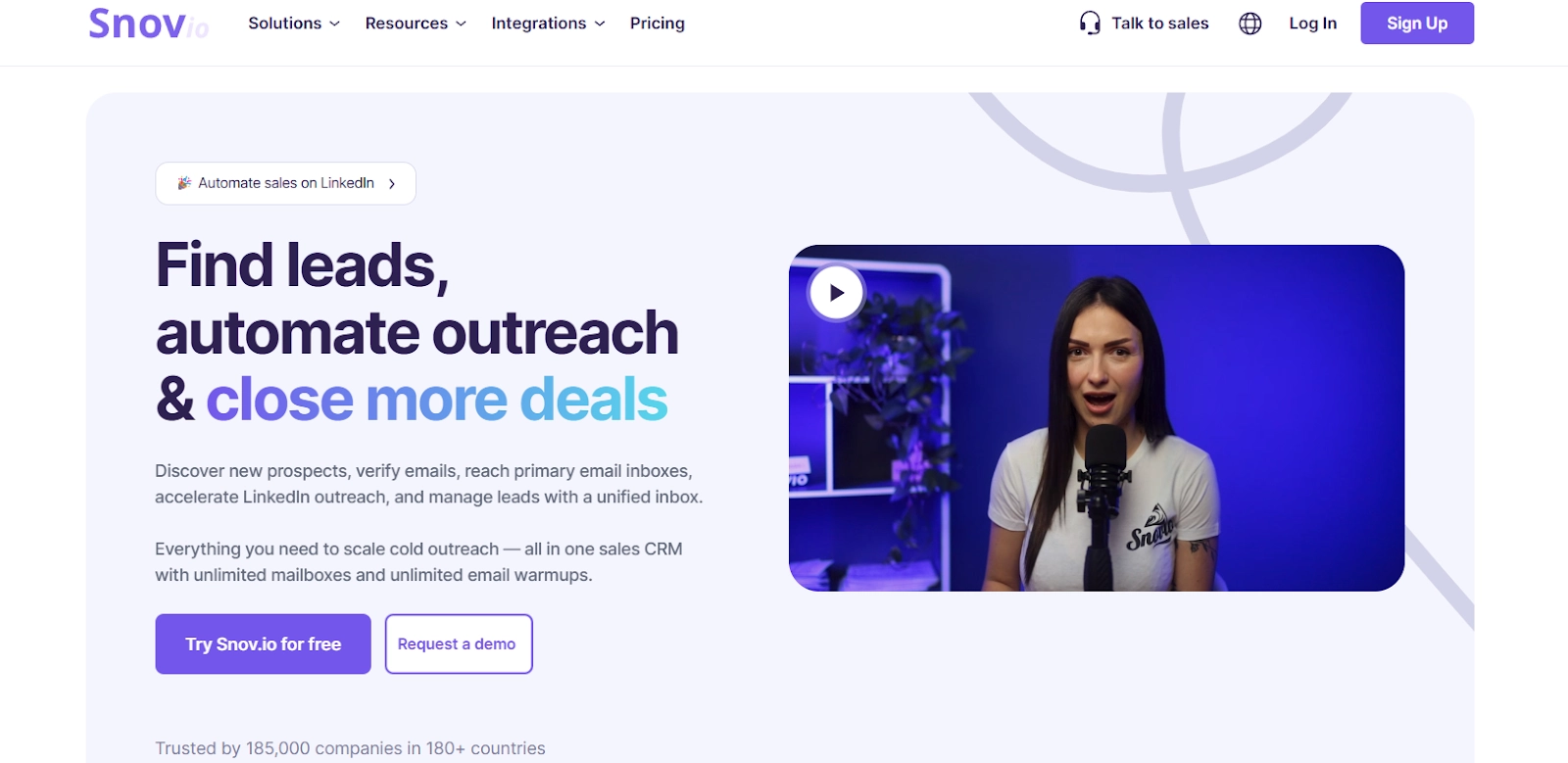 Snov.io is a sales outreach & prospecting platform designed to give you all the pieces you need (email finder, verifier, outreach, warm-up, tracking) in one tool.
