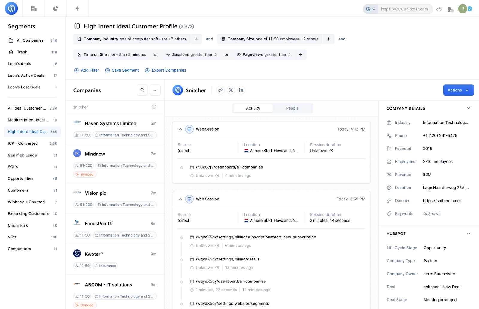 - Uncovers companies visiting your website and enriches them with essential B2B and contact data, letting you track their journeys from start to finish.