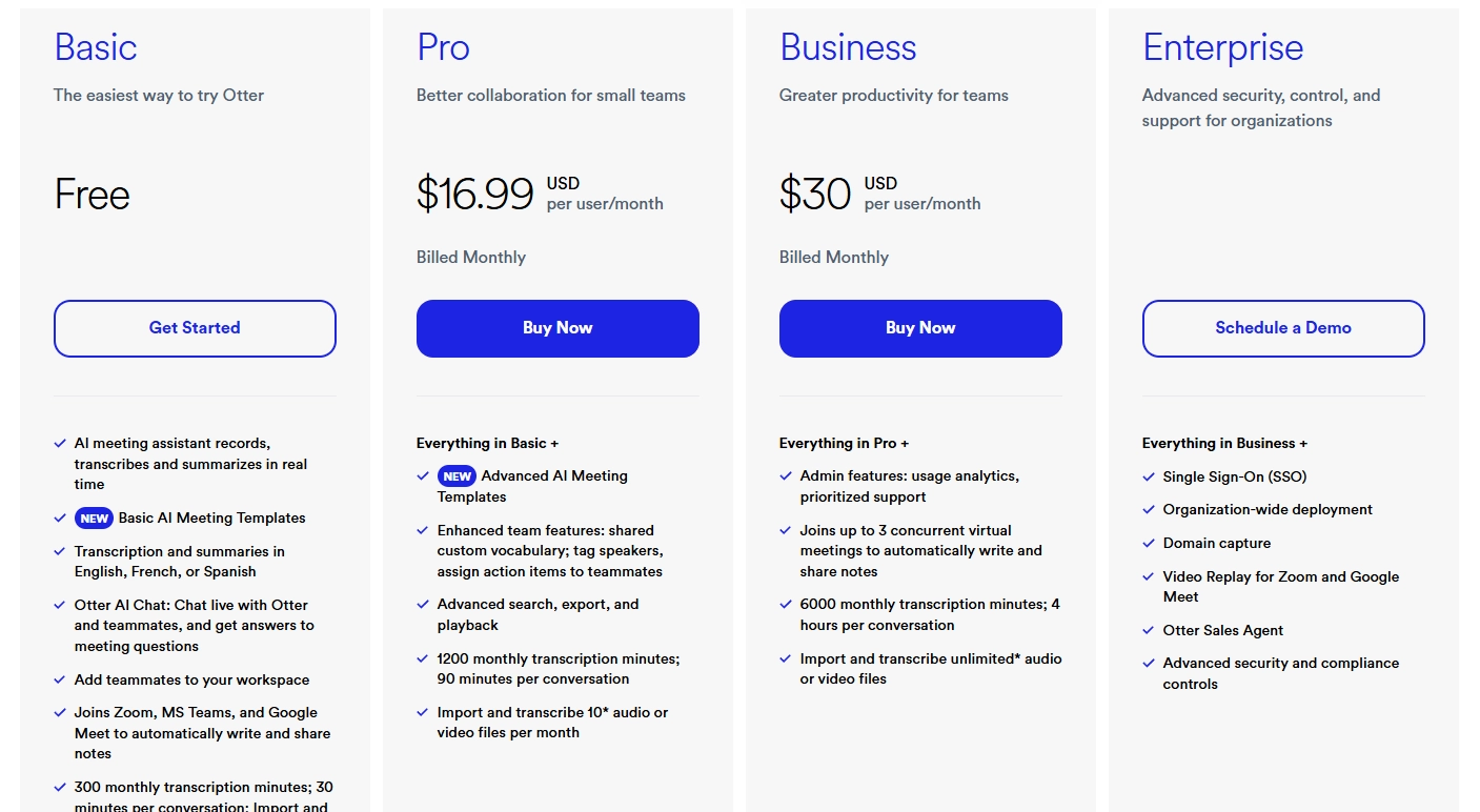 Otter.ai has four tiers: