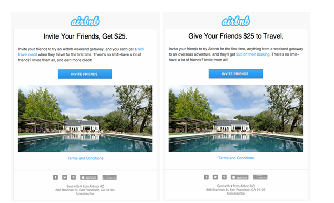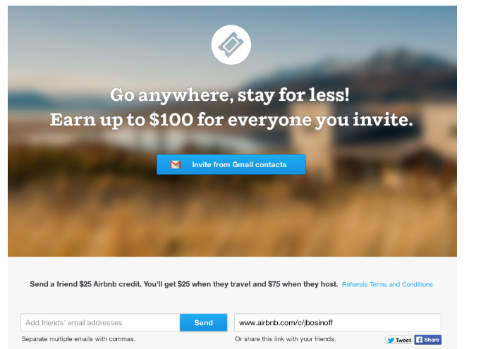 Airbnb also offered $25 off their first trip to new users who have been invited to encourage them to accept the invitation.