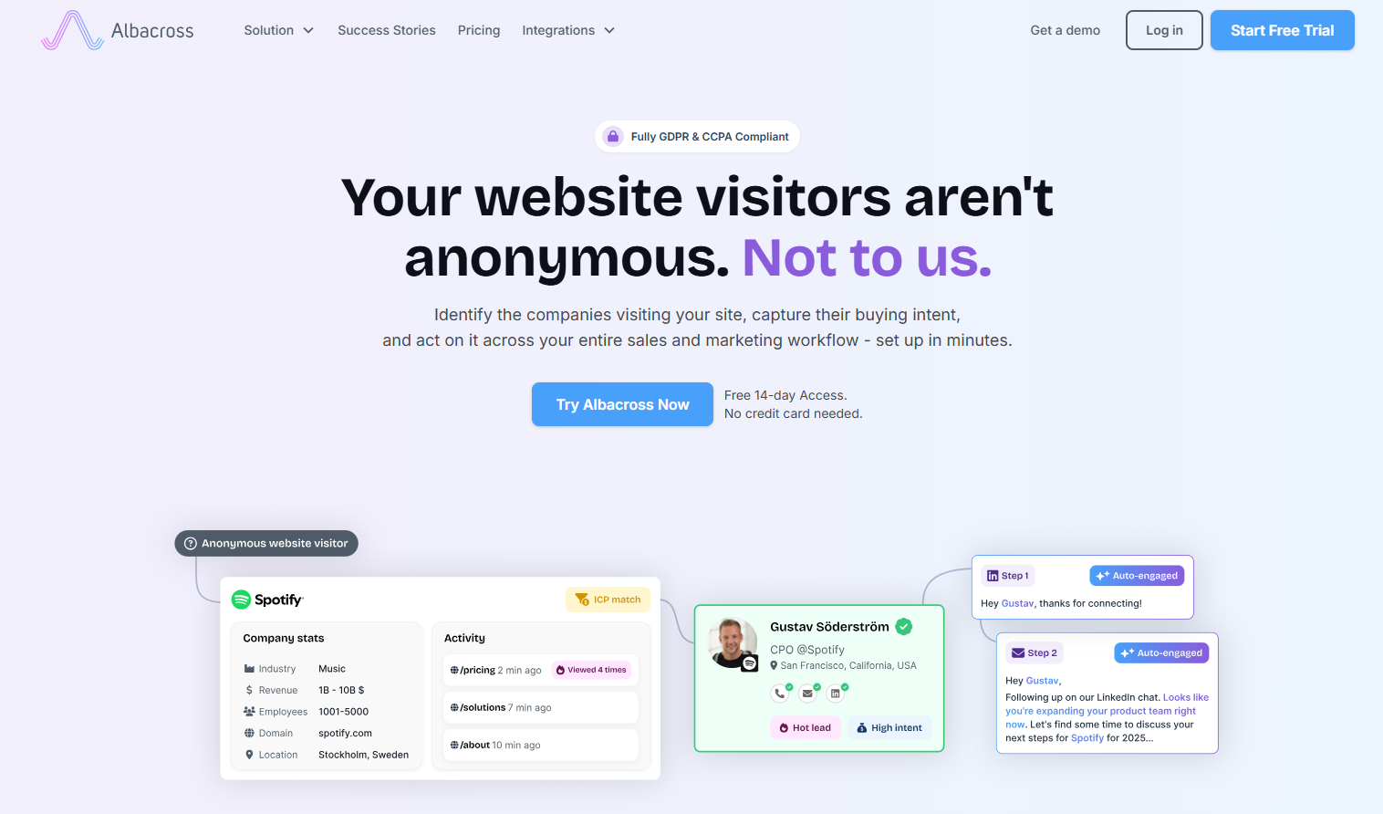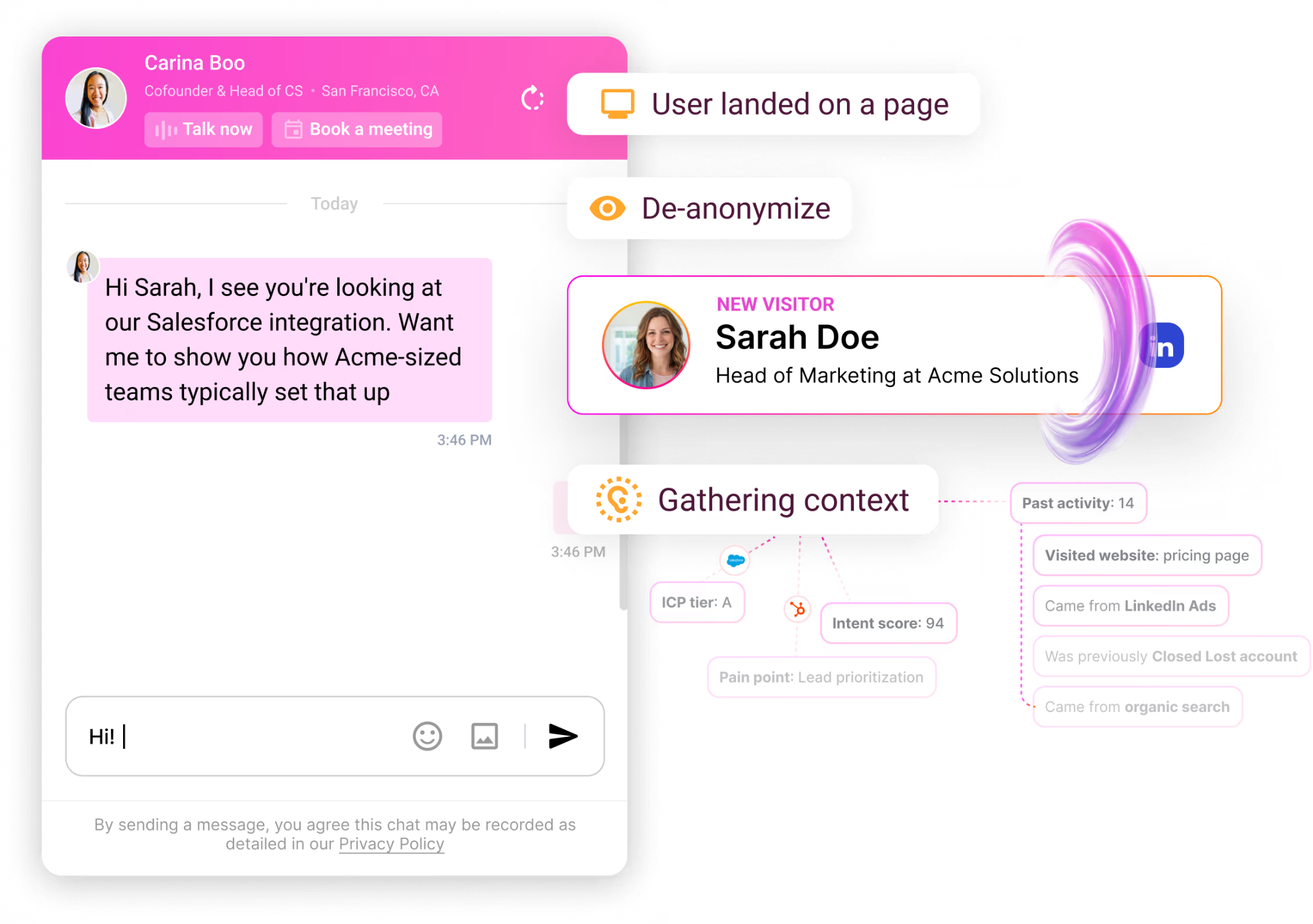 When someone lands on your site, the context is already there: who they are, what company, their engagement history, their intent signals, what play to run. The work happened before they arrived.