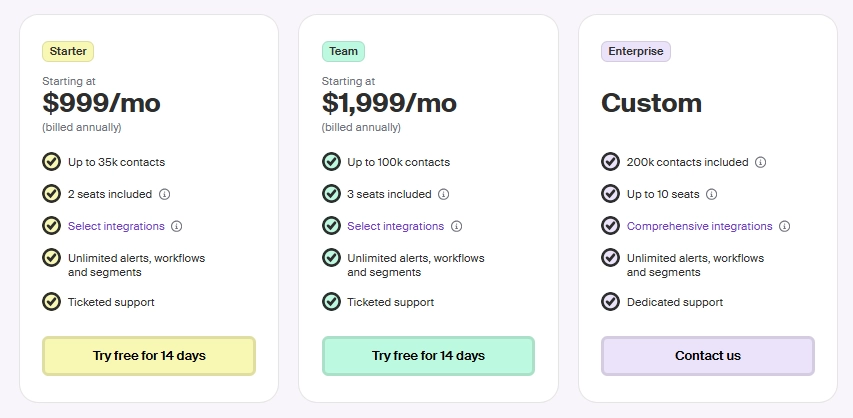 Automate: Designed for enterprise businesses, includes everything in Essential, plus fully customizable automated CRM workflows, key account behavior tracking, etc.