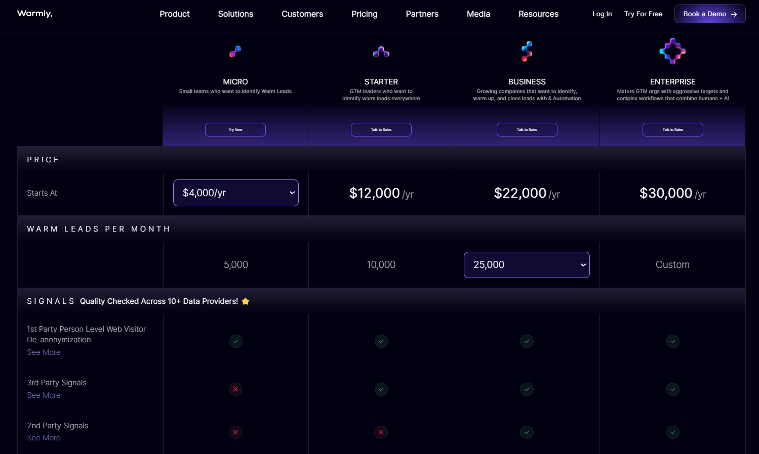 However, in addition to deep integrations with several lead intelligence and sales tools, Warmly also provides a Warm Bundle—partner discounts for over 25 sales, marketing, and GTM tools.