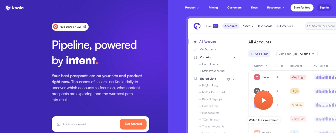 - Koala - Reveals first-party intent and product usage data.