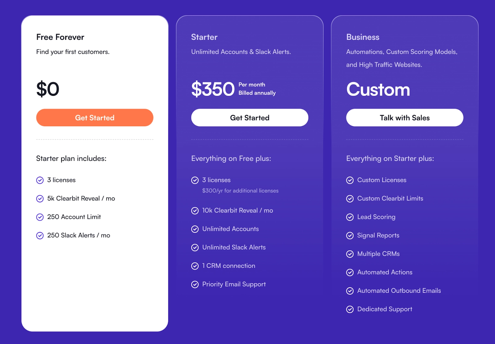 ❗Note: Warmly's pricing plans include access to Clearbit’s extensive database.