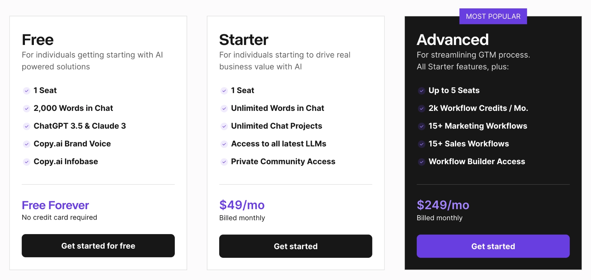 More advanced users can choose from three paid plans: