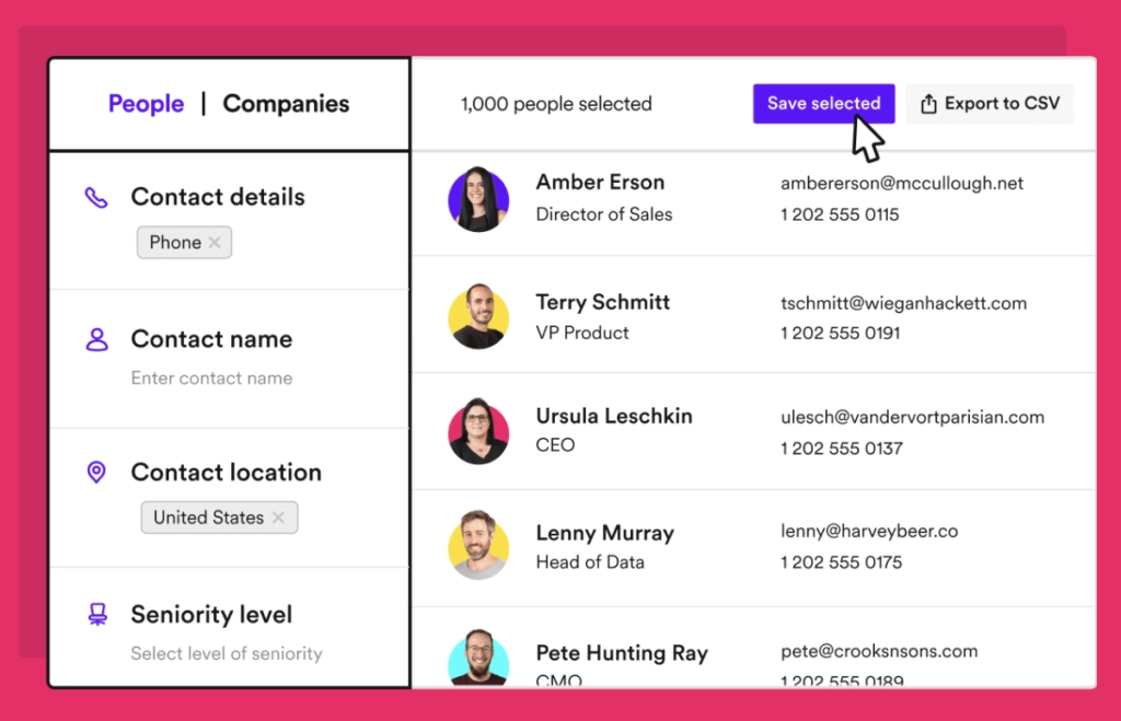 - Firmographics (job titles, email addresses, company addresses, phone numbers, etc.).