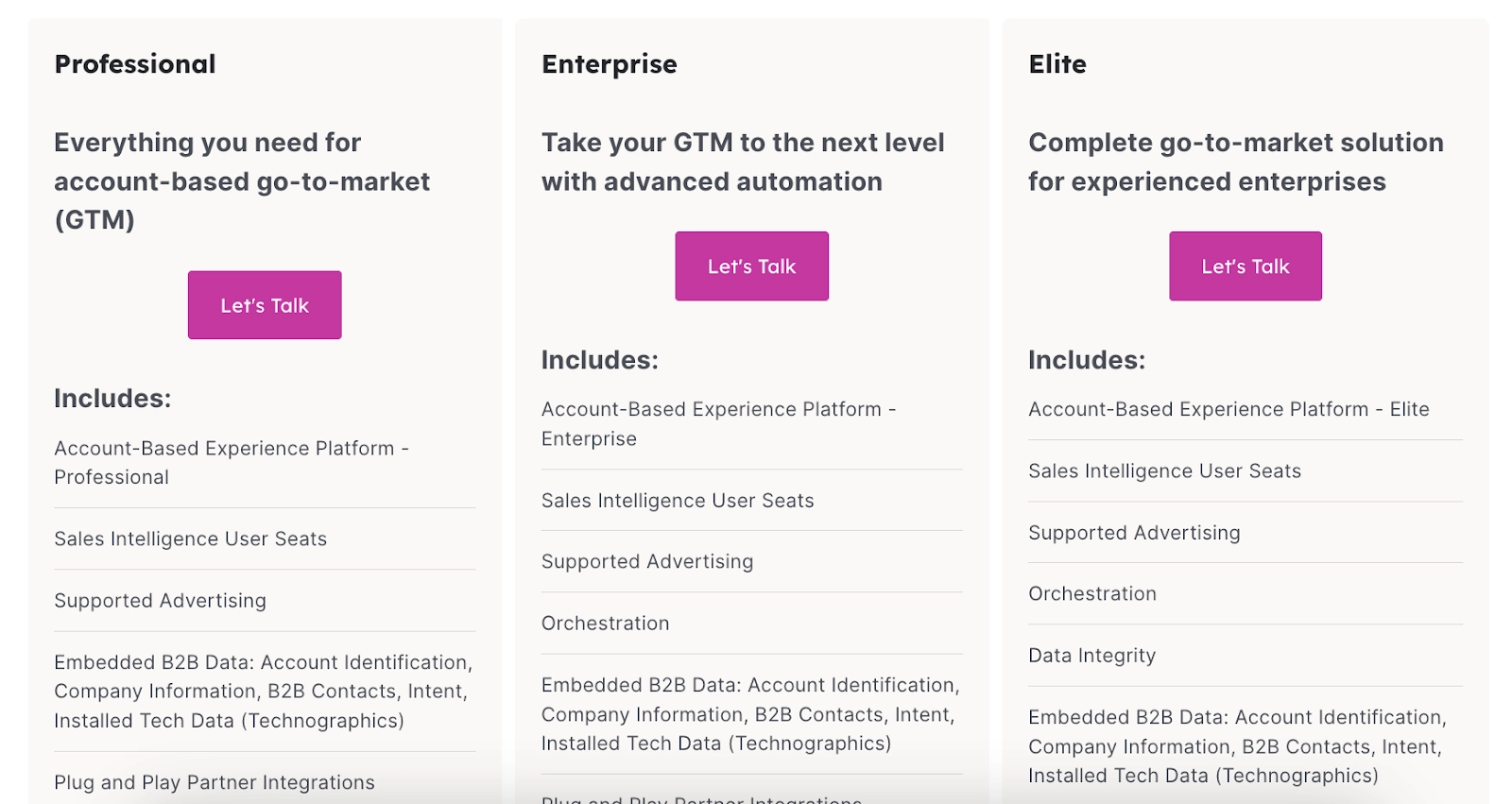 If you’re not interested in paying for all of Demandbase’s products, the platform lets you buy “A La Carte,” i.e., purchase only those you need.