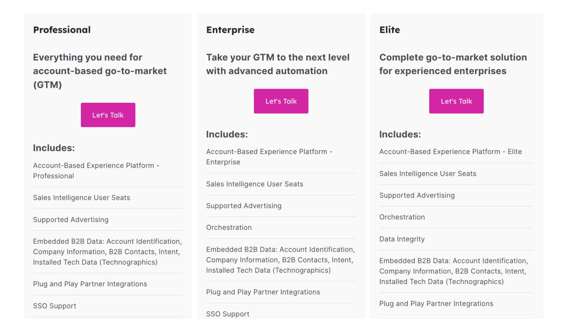 Again, Demandbase doesn’t publish prices for any of these plans, so you must contact sales for more details.