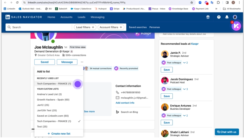 - Chrome extension for prospecting anywhere on the web.