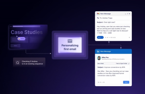 When it spots someone who fits your ICP and is showing interest, it immediately initiates personalized outreach tailored to that prospect’s industry, behavior, and buying stage.