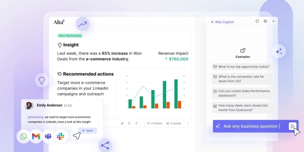 AI Copilots analyze buyer signals in real time, recommend next-best actions, and surface insights that would otherwise get buried in CRMs or forgotten in email threads.