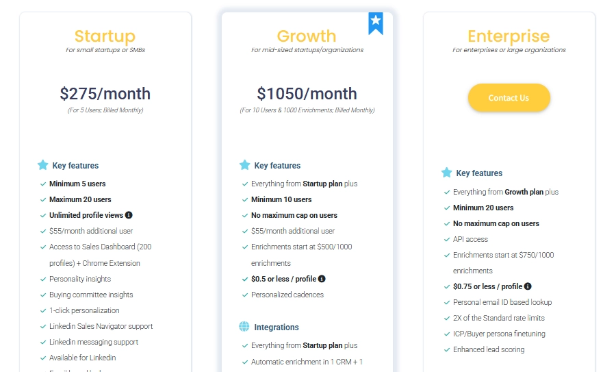 - Warmly: Offers budget-friendly packages starting at $19,000/year. This means that you’ll pay approximately $1,500/month for an SDR that never sleeps.